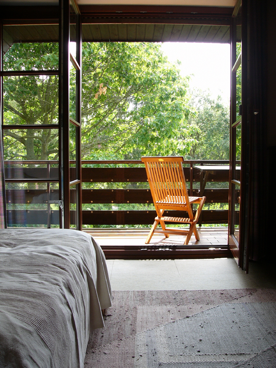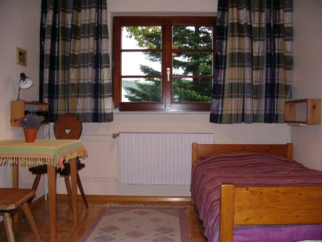 Im Erdgeschoss befindet sich mit Fenster zum Garten ein separates ruhiges Schlafzimmer mit einem Bett, Tisch und Kleiderschrank. Selbst bei geöffnetem Fenster sind die Geräusche von der Straßenseite kaum zu hören. Jeder, der sich nachts besondere Ruhe wünscht, wird das kleine 1-Bett Zimmer zu schätzen wissen.