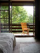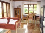 Das Obergeschoß erreicht man vom großen Wohnzimmer aus über eine offene Holztreppe. Im ersten Stock befindet sich ein großes 2 Bettzimmer mit Sitzecke und optional einem zusätzlichem Kleinkinderbett (auf Anfrage). Von diesem Zimmer mit Südlage gelangt man auf den Balkon. Zur anderen Seite der Treppe befindet sich ein weiteres 2-Bett Zimmer. Zwischen den beiden Schlafzimmern ist das kleine WC.